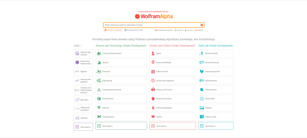Wolfram Alpha is a potent computational engine widely used for advanced scientific and math calculations. Its symbolic processing powers make it ideal for high-level mathematics and science problems, particularly for college students and professionals. It also covers many scientific and data-driven queries beyond typical homework scopes.